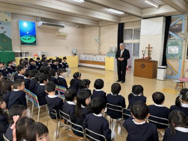令和7年度12月6日(土)にクリスマス祝会を行いました。保護者の方々に大きな拍手と温かい見守りをいただき、子ども達にとって心の糧となる一日となったかと思います。日々の練習をクリスマス祝会当日に発揮する子ども達の姿は、とても堂々としていて素敵な姿に感じました。また一つ成長した子ども達の姿を保護者の皆様に見せることができとても嬉しく思います。3学期もたくさん思い出を作っていきましょうね。《プ