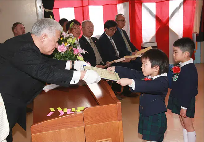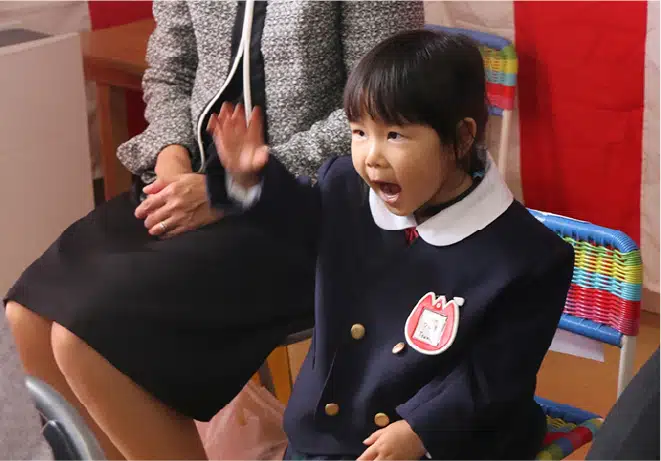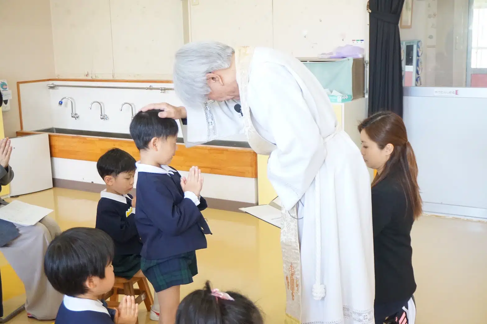 誕生会では、司祭様から一人ひとり祝福をしていただきます。そして、誕生日を迎えられたことを家族や周りの人たちに感謝し共に成長を喜びます。