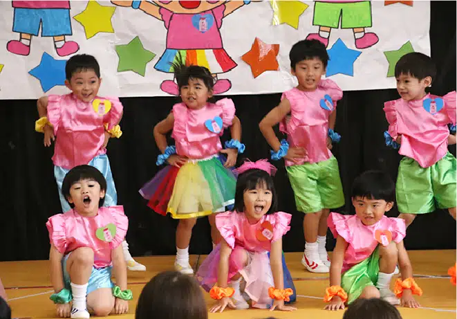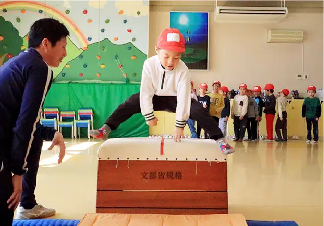 運動能力を高め、全身を使った動きが脳の発達を促します。「こころ」と「からだ」をバランス良く動かしながら、仲間と励まし合い挑戦する過程で協調性が芽生え、運動する楽しさを知ることを目的としています。身体機能が向上するだけでなく、成功体験が自信を育み、意欲的に次の目標へ挑む力を育てます。