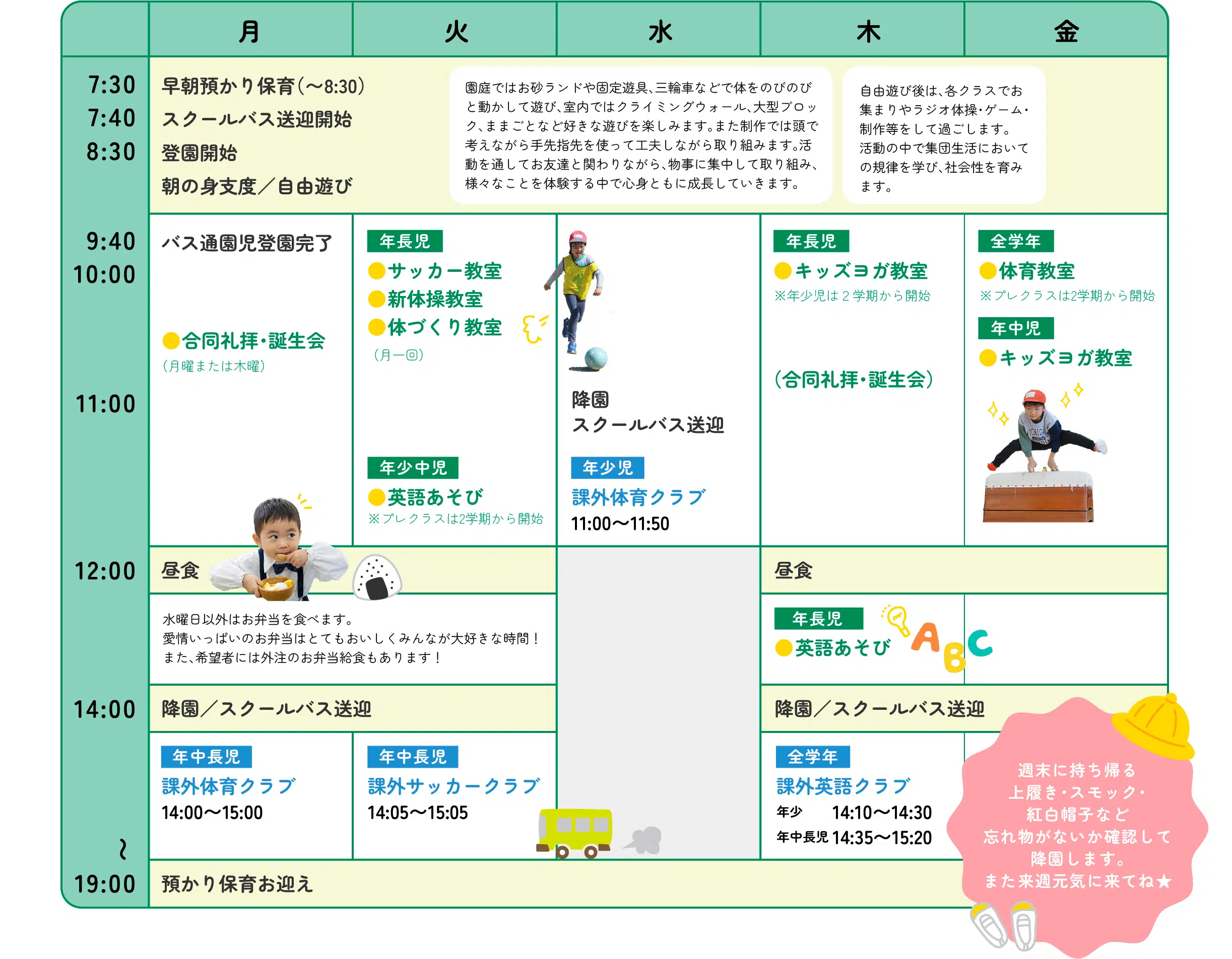 | 5月 | 親子遠足 / 避難訓練 交通安全教室 |